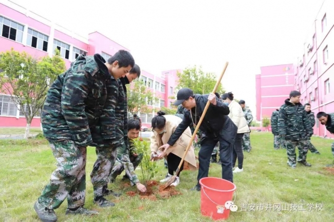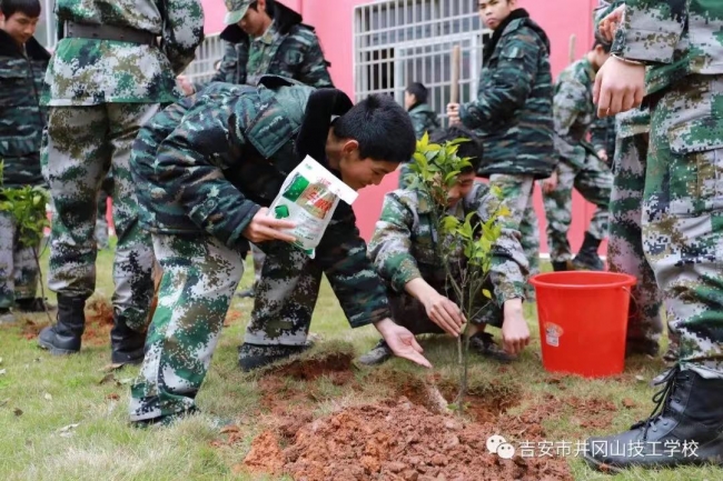 ????植樹現(xiàn)場,師生揮鍬鏟土、培土圍堰,共種沃柑樹、金田柚、樟樹等350棵。植樹現(xiàn)場氣氛熱烈,大家在專業(yè)人士指導下,嚴格按照標準挖坑、種樹、澆水、施肥、培土等,分工明確,相互配合,每項工作井然有序。一株株樹苗整齊排列、迎風挺立,成為一道靚麗的風景線。