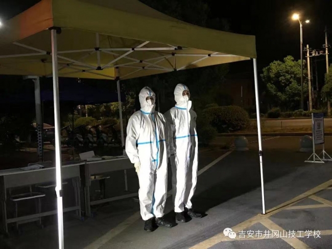 ????在白天和傍晚,66人組成的校衛(wèi)隊(duì),分成三個(gè)小組,在組長的帶領(lǐng)下維護(hù)校園秩序、制止不良行為、重點(diǎn)區(qū)域定點(diǎn)執(zhí)勤、校園不定時(shí)巡查。88人的校園突擊隊(duì),分9個(gè)檢查組7個(gè)巡邏組,主要任務(wù)是重點(diǎn)守住圍墻,杜絕私自外出的學(xué)生以及點(diǎn)外賣的學(xué)生,守住寢室出入口,維護(hù)核酸檢測及超市的秩序,負(fù)責(zé)內(nèi)圍安全。