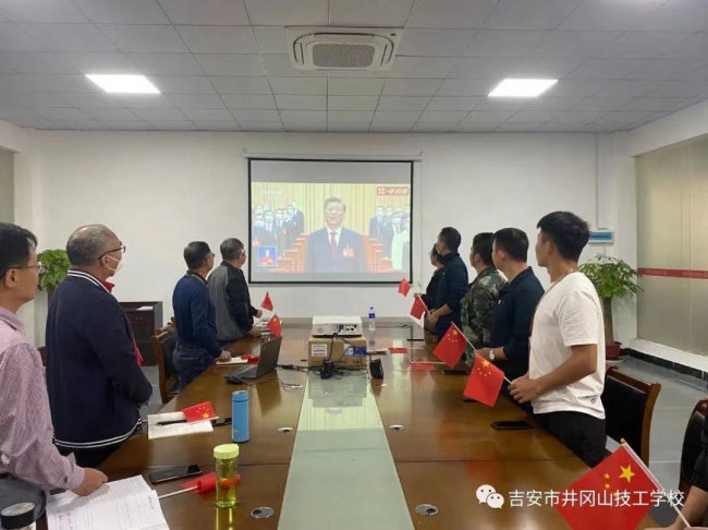 ??當(dāng)天上午10點(diǎn),按照校黨政聯(lián)合下發(fā)的《關(guān)于組織收聽收看中國共產(chǎn)黨第二十次全國代表大會開幕會的通知》,學(xué)校黨建室、各系部會議室以及全校教室座無虛席,師生3500余人分別集體收看了開幕會現(xiàn)場直播。校領(lǐng)導(dǎo)、黨員、入黨積極分子在黨建活動室集中收聽收看,教務(wù)處組織各系部教師收聽收看,各部門組織所屬員工收聽收看,學(xué)工處組織各班學(xué)生在教室集中收聽收看。在認(rèn)真聆聽了習(xí)近平總書記代表十九屆中央委員會向大會作的報(bào)告后,大家精神振奮,熱情高漲,在師生交流座談會上,大家表示要按照二十大報(bào)告繪就的藍(lán)圖,立足工作崗位,圍繞學(xué)校事業(yè)積極作為,以永不懈怠的精神狀態(tài)和一往無前的奮斗姿態(tài),把井校教學(xué)育人工作推向前進(jìn)。