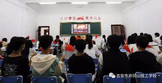 ????江西新聞客戶端訊(通訊員鐘莊子、楊希)秋日的吉安市井岡山技工學(xué)校,天朗氣清,陽光明媚。10月16日早8點(diǎn),運(yùn)動場走來了一群又一群可愛的學(xué)生。隨著歌曲《萬疆》優(yōu)美的曲調(diào)響起,12位同學(xué)翩翩起舞,她們身姿輕盈柔美,像一只只百靈鳥,飛向藍(lán)天。還有一批學(xué)子站在國旗臺下,即興朗誦《月光下的中國》,聲聲如絲,如掛起的云帆,駛?cè)肽阄倚暮?。學(xué)生自發(fā)用歌舞用詩句,贊美中國共產(chǎn)黨,把深情的頌歌,獻(xiàn)給祖國母親,用舞姿詮釋熱情,以青春之我赴二十大之約。???