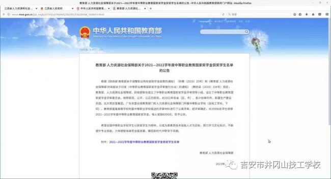 ????根據(jù)《教育部人力資源社會保障部關(guān)于2021—2022學(xué)年度中等職業(yè)教育國家獎學(xué)金獲獎學(xué)生名單的公告》獲悉,經(jīng)評審確定,我校顏慧紅同學(xué)獲得2021—2022學(xué)年度中等職業(yè)教育國家獎學(xué)金,獎勵金額6000元。