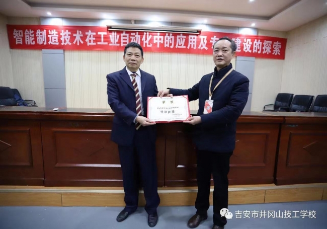 ????2月14日,學(xué)校舉行儀式,聘請(qǐng)廣州科技職業(yè)技術(shù)大學(xué)張曉東為我校特聘教授。校領(lǐng)導(dǎo)向張曉東教授頒發(fā)聘書。
