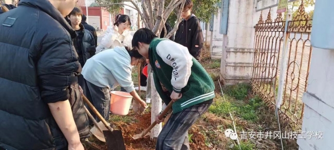 ????2月17日,我校信息技術(shù)系師生利用勞動(dòng)課時(shí)間給樹(shù)木育肥,用勞動(dòng)美化綠化校園。據(jù)悉,本次“植樹(shù)育樹(shù)”活動(dòng)由工會(huì)、后勤、團(tuán)委三部門(mén)聯(lián)合開(kāi)展,分系部依次進(jìn)行育肥、認(rèn)領(lǐng)樹(shù)木和植樹(shù)?;顒?dòng)中,學(xué)生用“心”了解植物生長(zhǎng)的習(xí)性,在園林老師的指導(dǎo)下為樹(shù)木施肥,展現(xiàn)出了他們對(duì)植樹(shù)育樹(shù)的信心與誠(chéng)心。
