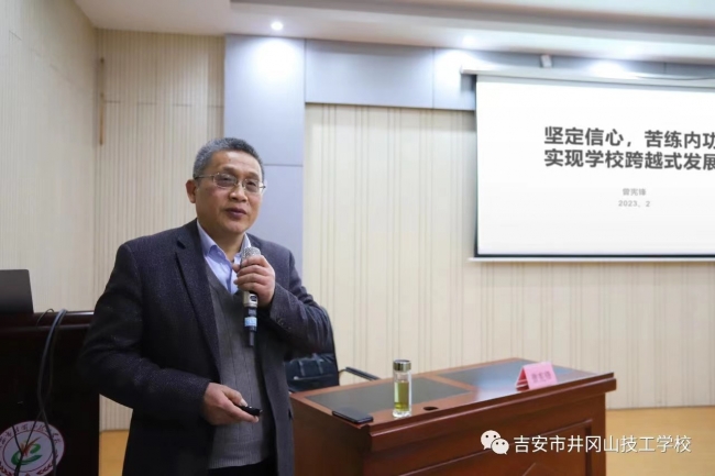????本次講座,曾憲鋒教授結合自身的教育經歷,就當前中等職業(yè)教育發(fā)展的形勢、黨的二十大對教育發(fā)展提出的要求、技校學生的主要特點、有針對性做好教育工作,師德師風建設的關鍵等方面進行了交流探討。曾憲鋒教授提出,要明確辦學目標、辦學定位,在專業(yè)設置上既要有大眾專業(yè),更要有特色專業(yè),在培養(yǎng)方式上既要重課堂,更要重實踐操作。此次講座貼近技校實際,內容豐富,對學校教育的發(fā)展有很強的指導性與啟發(fā)意義,開拓了我校的辦學思路。